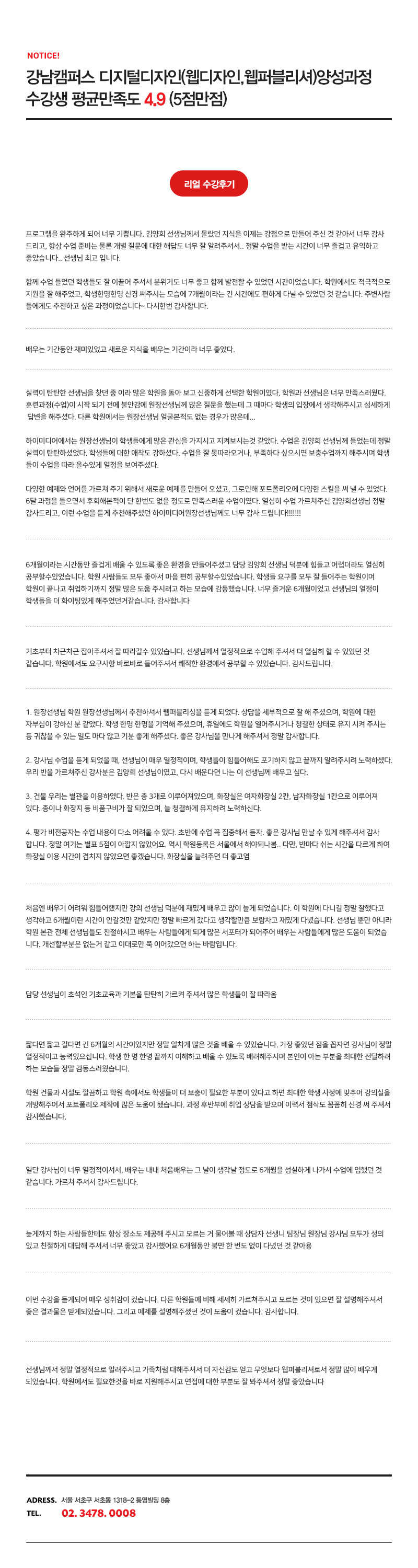 [강남캠퍼스] 디지털디자인(웹디자인,웹퍼블리셔)양성과정 수강생 평균만족도 4.9 (5점만점)